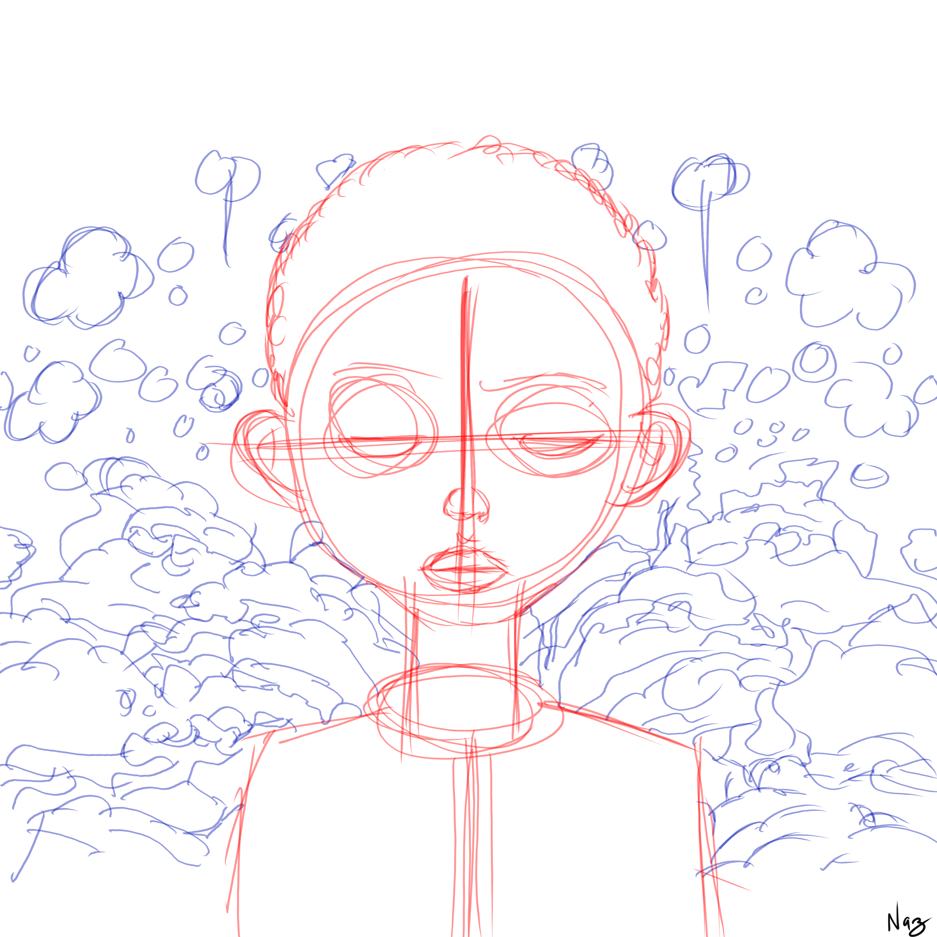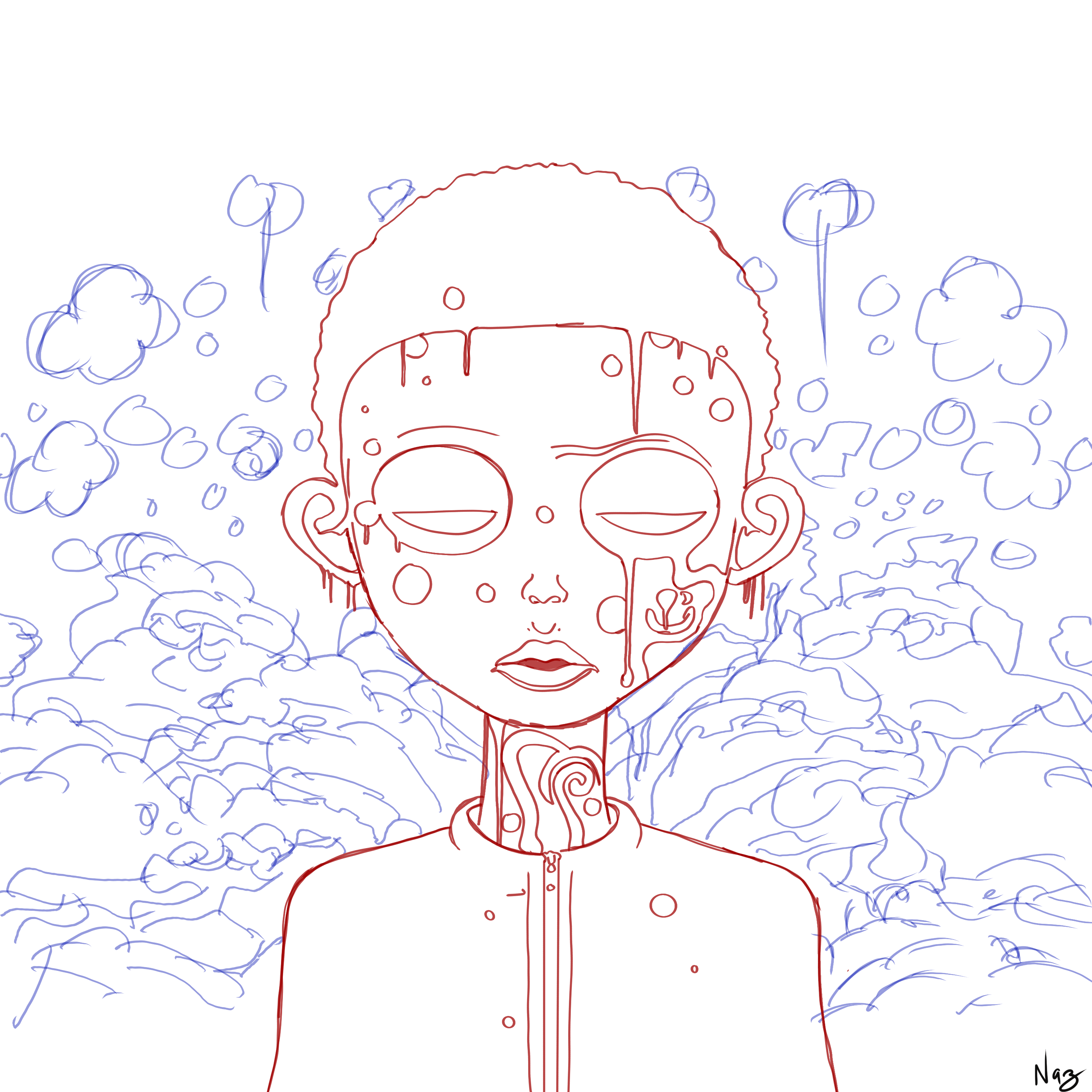 “Awa Meta” which translates to “The Three of Us,” explores the multifaceted nature of the self and the internal dialogues that shape our identity. This piece was inspired by the idea that we are not singular entities, but a complex community of internal voices, experiences, and potential versions of ourselves. It reflects on the importance of acknowledging and integrating these different facets, visualizing the internal landscape as a space of both conflict and harmony. The artwork captures the journey toward self-awareness, where the three “selves” are brought into a shared space of reflection and understanding.