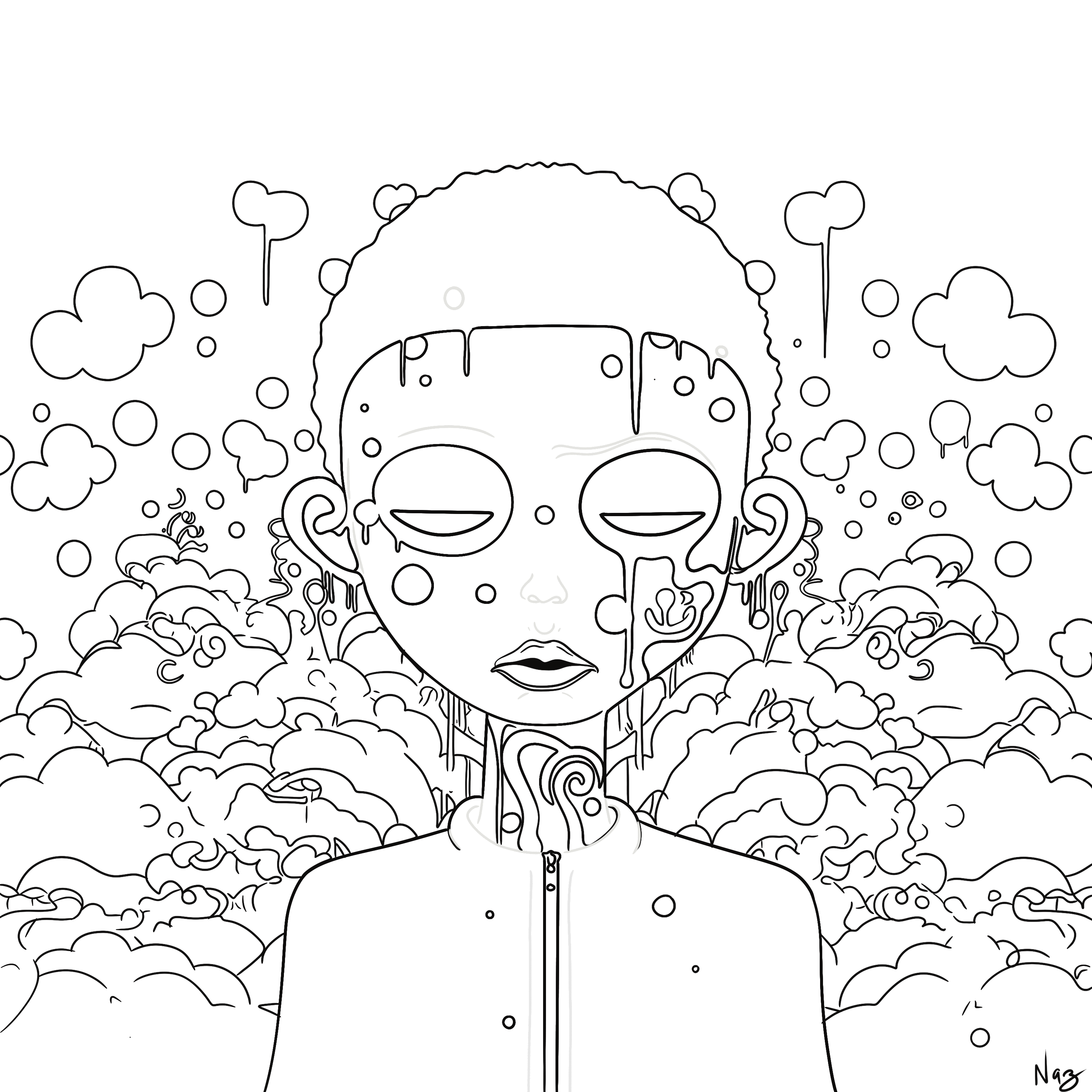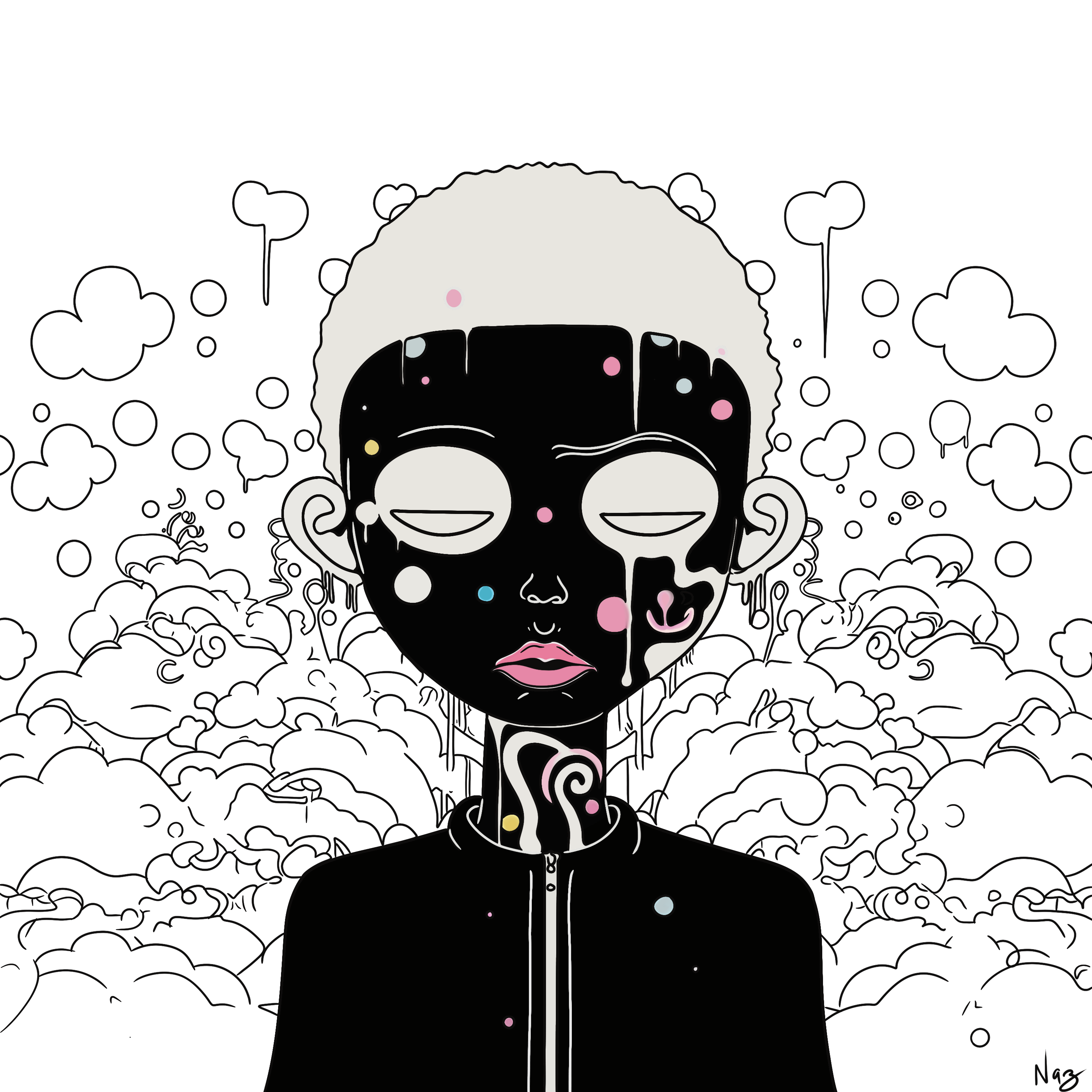 “Awa Meta” invites viewers to reflect on their own internal facets and the different “voices” that make up who they are. It encourages an exploration of self-integration and the importance of honoring all parts of the self, even the ones that seem contradictory. This piece serves as a visual celebration of the complex and beautiful community that exists within every individual. It challenges viewers to engage in their own internal dialogues with curiosity and compassion, recognizing that true self-awareness comes from acknowledging and uniting the various facets of their spirit into a harmonious and authentic whole.